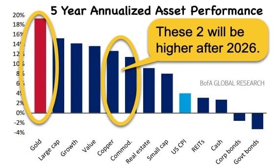 o (+) Physical Commodities = Gold @ $4,983/oz. & Silver @ $103/oz.